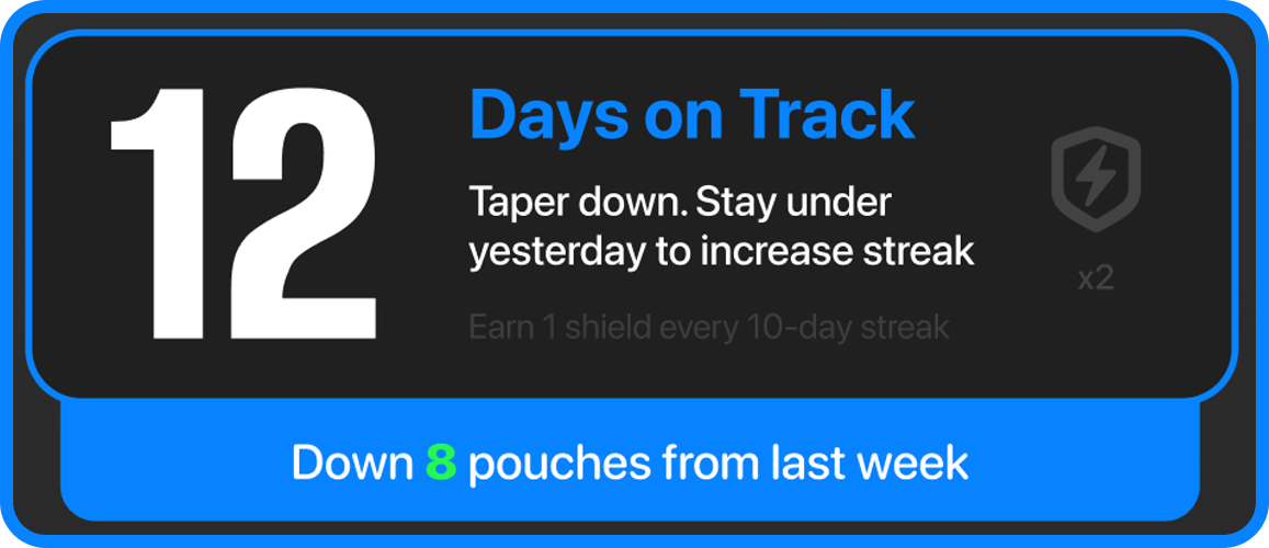 The problem with pouches isn’t just the nicotine, it’s that they are invisible. Unlike smoking, there’s no “smoke break” or natural stopping point. It’s a habit that easily becomes unmanaged, mindless, and slipping into your productivity and gym sessions unnoticed. Most apps try to solve this with “willpower,” but willpower is a poor system for a habit built on a spike-and-crash cycle. You don’t realize how deep you are until your heart rate redlines during a workout or you’re checking your gums in the mirror.